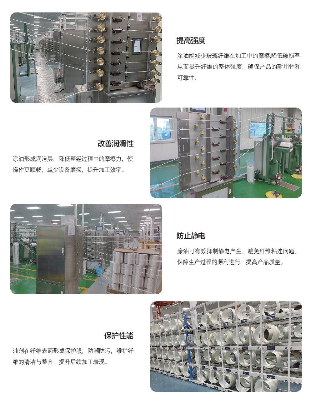 涂油柜是玻璃纖維生產(chǎn)線中的一種設(shè)備,主要用于對(duì)紗線進(jìn)行涂油處理。涂油柜通常由涂油槽、輸送系統(tǒng)、涂油輥和控制系統(tǒng)等組成,其作用是在紗線表面形成一層薄膜,提高紗線的柔軟性和潤(rùn)滑性,減少紗線之間的摩擦和斷裂。